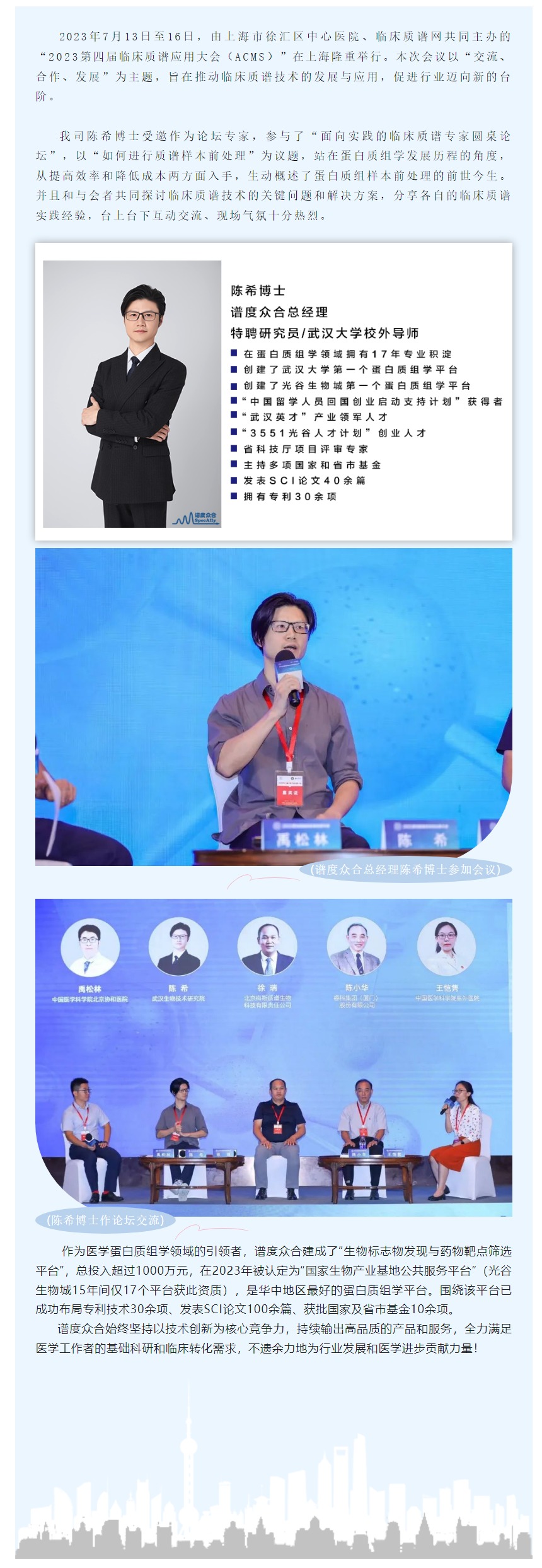 共创临床质谱新天地|谱度众合总经理陈希博士受邀参加“第四届临床质谱应用大会(ACMS)”