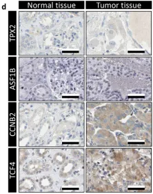 在新药研发过程中,HPA数据库可以帮助研究人员识别潜在的药物靶点和生物标志物,提升药物研发的效率。例如,在一项研究中,作者在透明细胞肾细胞癌的研究中发现了核心差异基因,使用HPA数据库中正常组织和肿瘤组织中的免疫组织化学(IHC)图像,验证了这些基因的表达差异。后续以这些基因作为靶点,找到了潜在的治疗药物[5]。