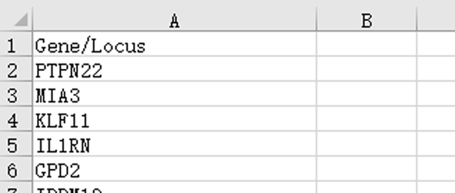 ④ 数据整理:打开下载好的Excel文件,重点关注C列的“Gene/Locus”项。将此列靶点数据复制到Excel的新工作表中。