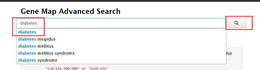 ② 疾病搜索:在搜索框中输入疾病名称,如“diabetes(糖尿病)”,点击搜索按钮。