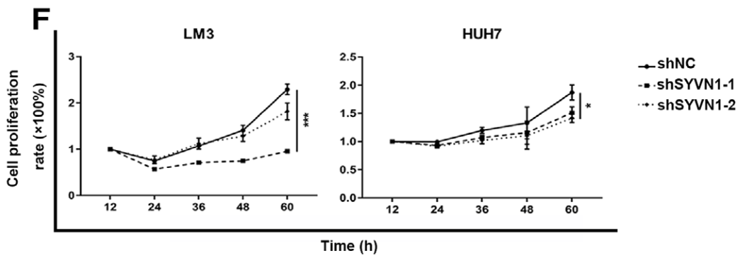 为了阐明SYVN1在HCC转移中的作用,作者通过构建细胞/动物模型,确定其对癌细胞增殖的影响。结果表明,SYVN1在裸鼠体内和在血清缺乏的培养基中能促进肝癌细胞增殖(图6)。