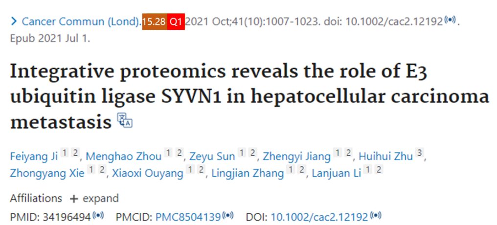 今天笔者和大家分享一篇由浙江大学医学院第一附属医院的李兰娟院士团队发表在《Cancer Communications》杂志上的文章,主题为“整合蛋白质组学揭示E3泛素连接酶SYVN1在肝癌转移中的作用”。